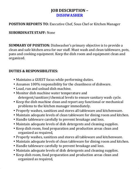 Dishwasher Job Description Sample Mt Home Arts from mthomearts.com